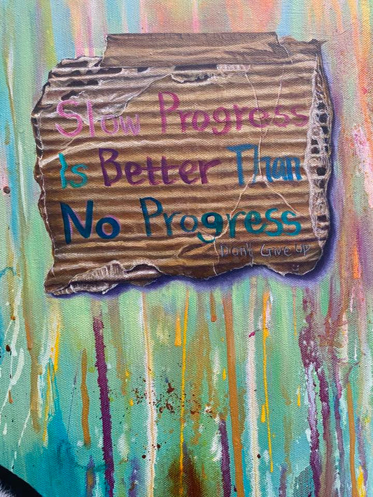 "Slow Progress" Thinking Bear - Original Mixed Media Painting