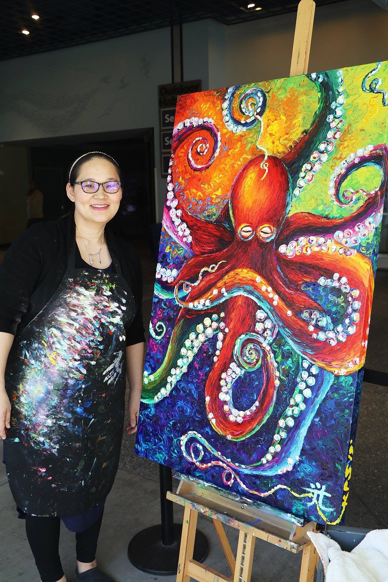 Original Oil Finger paintings by artist Kwangsook Schaefermeyer from her home studio.