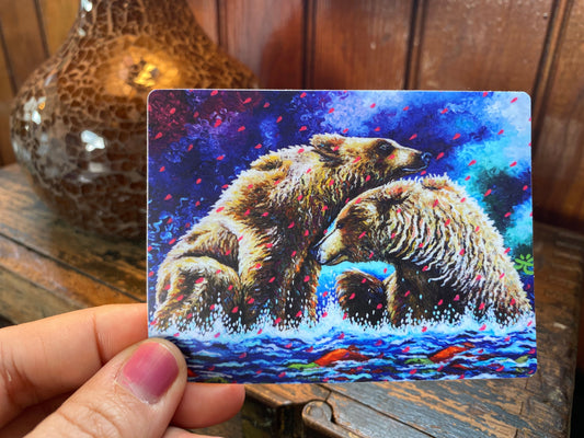 "Fishing Day with Mama" Bears in Alaska - Original Oil Finger Painting